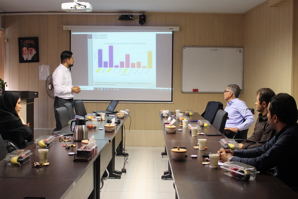 جلسه دفاع پایان‌نامه مصطفی قیس کمال الدوامی، دانشجوی بین‌الملل مقطع کارشناسی ارشد رشته تغذیه بالینی دانشکده علوم تغذیه و رژیم‌شناسی دانشگاه علوم پزشکی تهران برگزار شد.