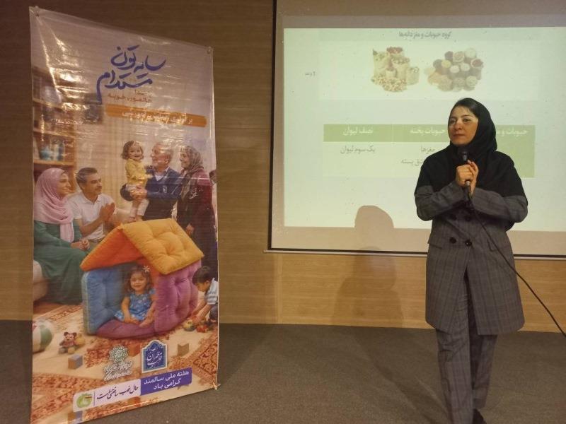 سخنرانی دکتر هستی انصار، عضو هیأت‌علمی دانشکده علوم تغذیه و رژیم شناسی در سومین روز از برنامه‌های آموزشی هفته ملی سالمندان